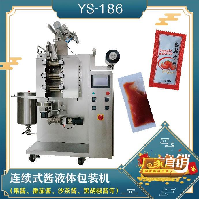 YS-186 連續(xù)式醬體包裝機特 點 1、適用于食品、化妝類粉劑、液體、醬體等物品的計量包裝。2、可自動完成制袋、計量、下料、封合、分切、計數(shù),可根據(jù)客戶要求配置打印批號等功能。3、觸摸屏操作,PLC控制,伺服電機控制袋長,性能穩(wěn)定、調(diào)整方便、檢測準確。智能式溫控儀,PID調(diào)節(jié),保 證將溫度的誤差控制在1℃內(nèi)。…