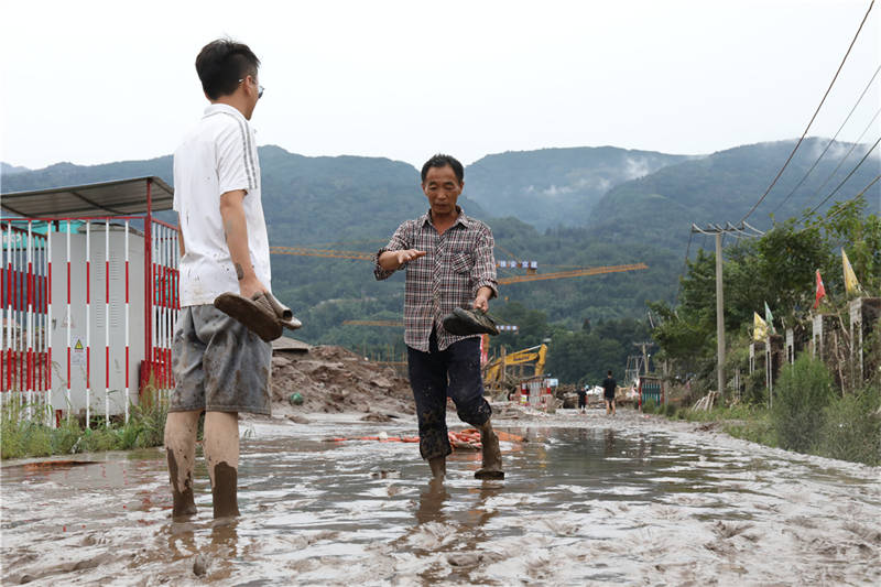 8月18日下午,在草壩青衣江大橋建設(shè)現(xiàn)場(chǎng),項(xiàng)目部外的院壩、工地附近的道路,均覆蓋著厚厚的淤泥!白蛲砭o急撤離,我的車(chē)停在河邊,也沒(méi)來(lái)得及開(kāi)走,現(xiàn)在都沒(méi)找到!币荒樒v的李勁松告訴記者,雖然洪水漲勢(shì)迅猛,但他們撤離之前,提前通知了電力部門(mén)斷電,否則若有人再次靠近洪水,將面臨觸電的風(fēng)險(xiǎn)。