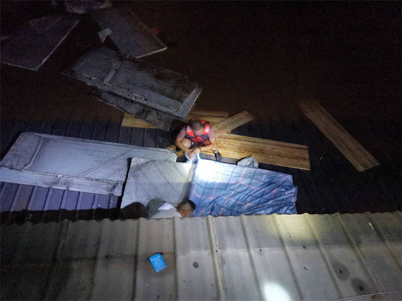 “感謝3名值班人員及時(shí)打電話(huà)通知我,否則后果不堪設(shè)想!焙(jiǎn)敬奎說(shuō),回想起昨晚的情形,心里還是有些后怕。當(dāng)時(shí),他接到值班人員電話(huà)后,發(fā)現(xiàn)門(mén)衛(wèi)室外的洪水已經(jīng)逼近脖子,無(wú)法順利撤離,洪水漲勢(shì)又快,不一會(huì)兒,他只得爬上門(mén)衛(wèi)室頂端才能避免被水淹沒(méi)。后來(lái),洪水沖來(lái)了一棵樹(shù),簡(jiǎn)敬奎借助這棵樹(shù)慢慢轉(zhuǎn)移到了附近一棵較高大的樹(shù)上繼續(xù)躲避,直至黃志和方華軍前來(lái)營(yíng)救。