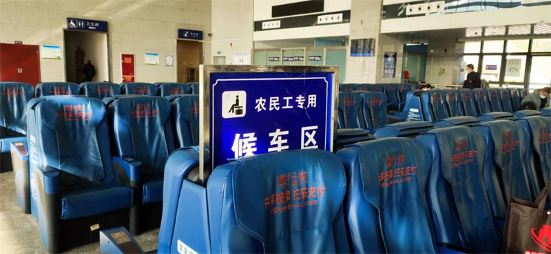 三是設(shè)置專門候車區(qū)。專設(shè)農(nóng)民工候車區(qū),配備軟座,方便農(nóng)民工朋友更好的候車休息,檢票口開(kāi)通“刷臉驗(yàn)票”及“人工通道”,安排工作人員引導(dǎo)農(nóng)民工朋友方便、快捷地乘坐客車。