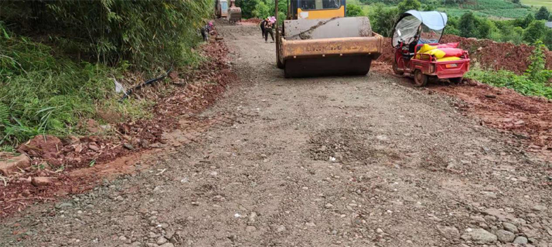 在路橋公司承接的“世界銀行貸款蘆山地震災后恢復重建天全縣始陽至新華農(nóng)村公路”項目天全縣新華鄉(xiāng)柏樹村至永安村段,其村道路面結構層差,路基窄,雨水多,晴通雨阻,對本地農(nóng)產(chǎn)品外運造成很大困擾,嚴重影響了民眾的生產(chǎn)生活。為積極響應市委市政府加快雅安市“四好農(nóng)村路”的部署安排,解決當?shù)卮迕癯鲂须y、本土農(nóng)產(chǎn)品外銷滯后等問題,路橋公司天全項目部主動作為,在推進項目部主體建設的同時,堅持以問題為導向,采用“始新路”施工現(xiàn)場自拌水穩(wěn)料,為村民鋪設了一段長臨時水穩(wěn)路面,方便廣大村民順利出行,促進當?shù)剞r(nóng)產(chǎn)品物資交流。