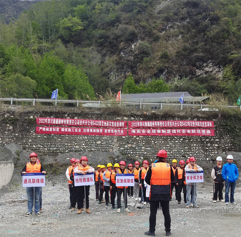 為切實保障群眾生命財產(chǎn)安全,及時規(guī)避汛期山洪地質(zhì)災(zāi)害,進一步提升全員防汛應(yīng)急搶險快速處置能力和實戰(zhàn)水平,4月15日,交建集團路橋公司寶興分公司組織全體員工20余人,在省道432線水毀項目部開展2022年度地質(zhì)災(zāi)害暨防洪防汛應(yīng)急演練。