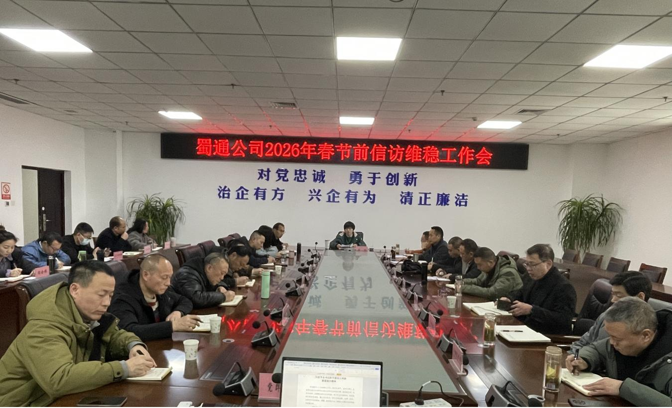 為切實(shí)做好2026年春節(jié)期間的信訪穩(wěn)定、安全生產(chǎn)與優(yōu)質(zhì)服務(wù)工作,營造和諧、有序、平安的節(jié)日出行環(huán)境,2月6日,蜀通公司組織召開春節(jié)前信訪維穩(wěn)工作會。公司黨總支書記、董事長唐娜主持會議,領(lǐng)導(dǎo)班子成員、各部門負(fù)責(zé)人及各單位黨支部書記和責(zé)任人參加。