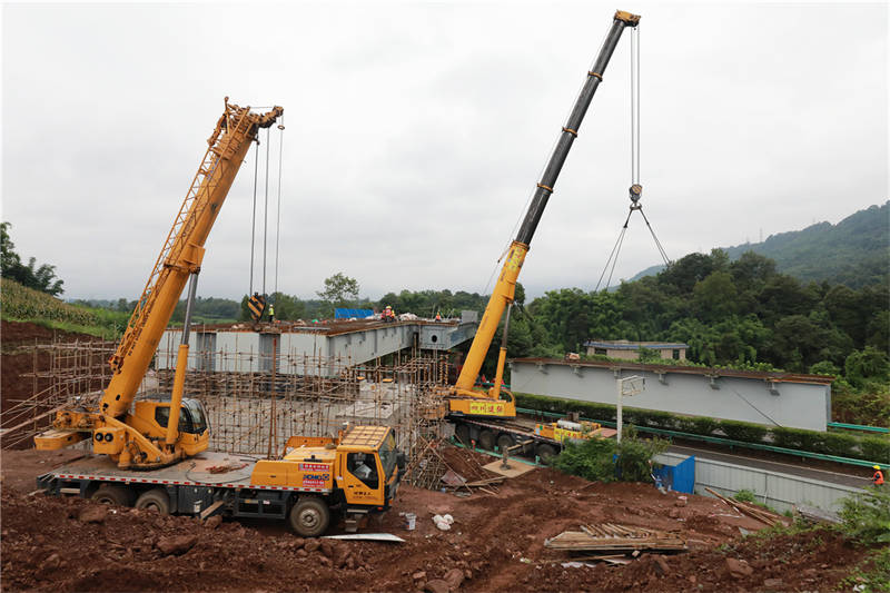 雅眉樂(lè)高速跨線橋是成雅快速通道(雅安段)新建項(xiàng)目的3座高速公路跨線橋之一,此外的成雅高速跨線橋、雅西高速跨線橋前期已完成鋼箱梁吊裝;水津關(guān)青衣江特大橋、陳家灣隧道、水井灣隧道、鄧家?guī)r隧道等成雅快速通道控制性工程施工進(jìn)展順利,為年底實(shí)現(xiàn)成雅快速通道(雅安段)路基(除橋、隧外全)線貫通目標(biāo)奠定了基礎(chǔ)。