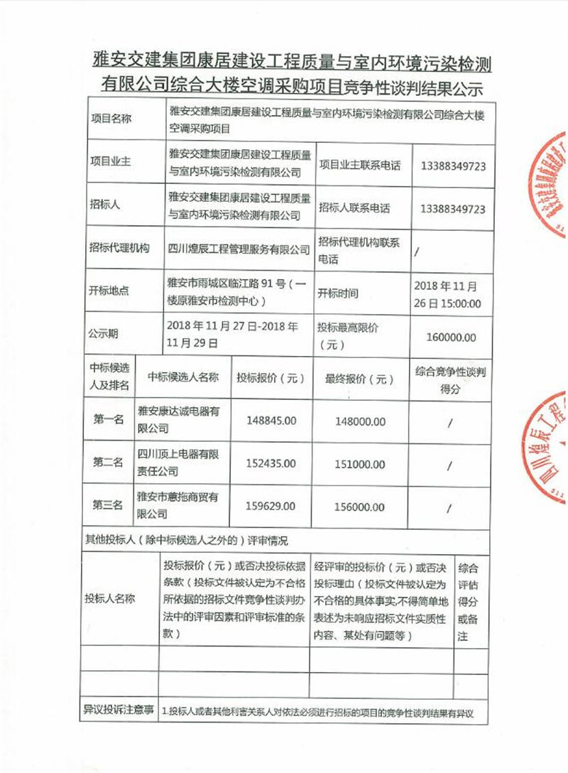 綜合大樓空調(diào)采購項(xiàng)目競爭性談判結(jié)果公示