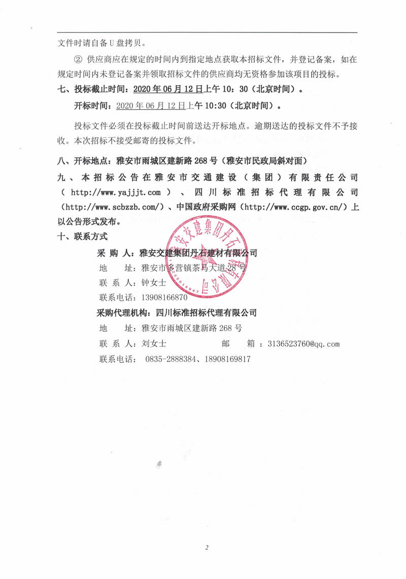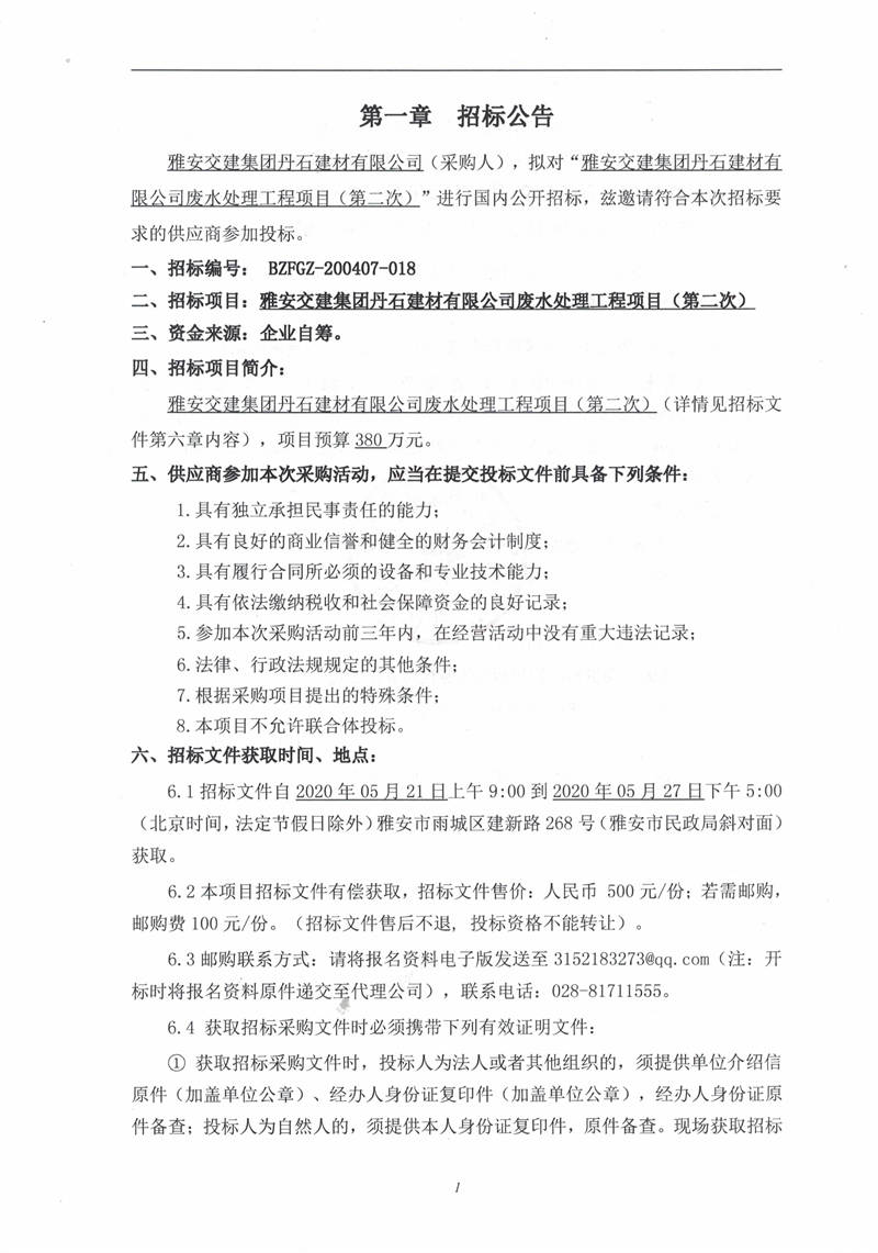 雅安交建集團丹石建材有限公司廢水處理工程項目(第二次)招標公告
