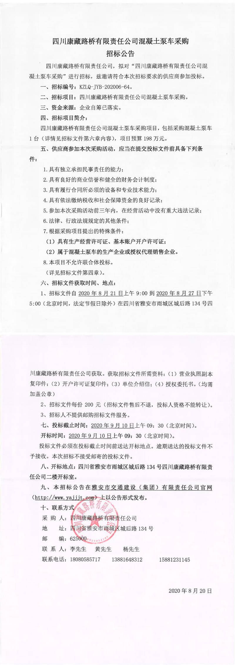 四川康藏路橋有限責(zé)任公司混凝土泵車采購招標(biāo)公告