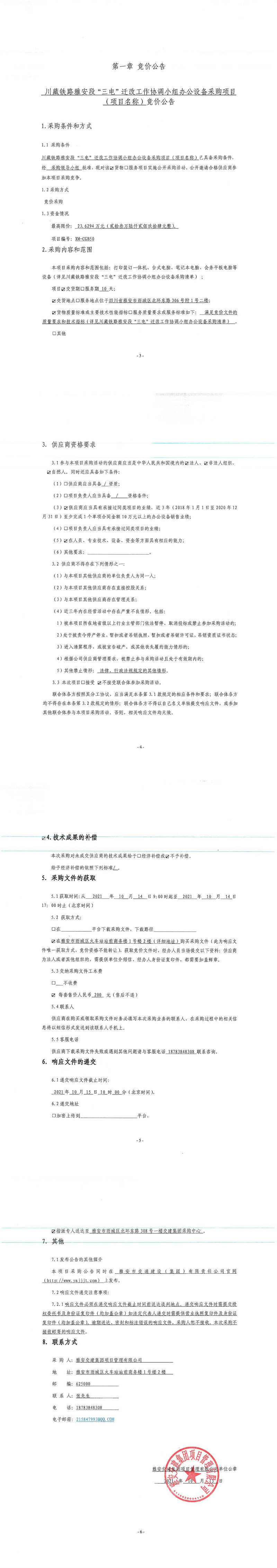 雅安交建集團項目管理有限公司川藏鐵路雅安段“三電”遷改工作協(xié)調(diào)小組辦公設備采購項目競價公告