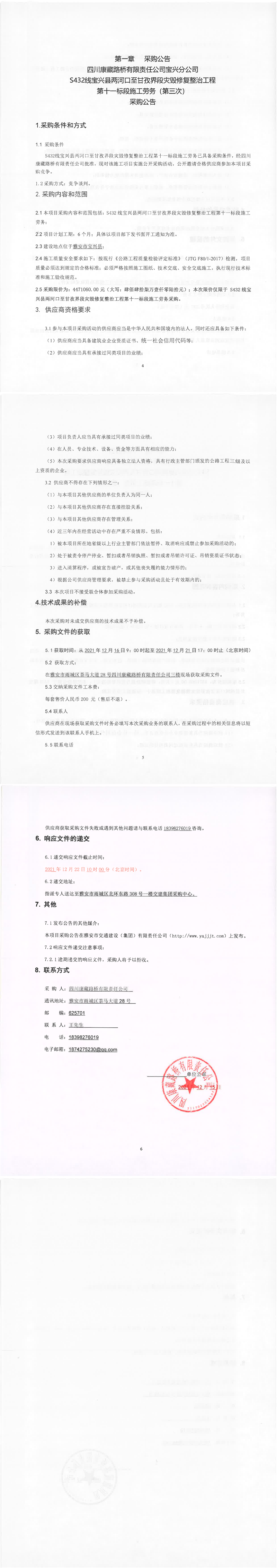 四川康藏路橋有限責任公司寶興分公司S432線寶興縣兩河口至甘孜界段災(zāi)毀修復(fù)整治工程第十一標段施工勞務(wù)(第三次)采購公告