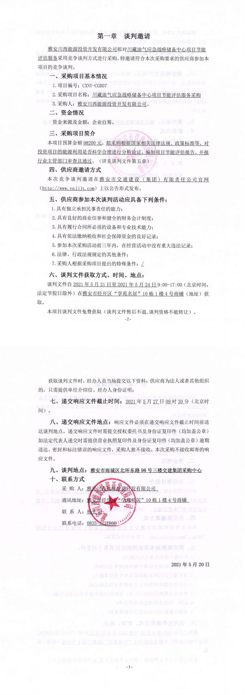 雅安川西能源投資開發(fā)有限公司川藏油氣應(yīng)急戰(zhàn)略儲備中心項(xiàng)目節(jié)能評估服務(wù)采購競爭談判公告