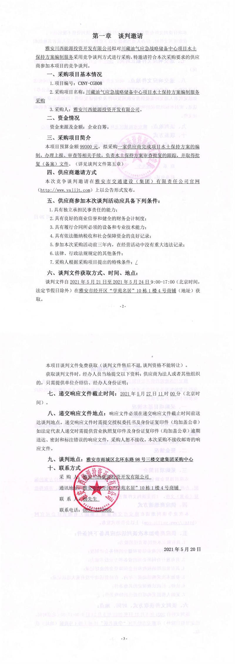 雅安川西能源投資開發(fā)有限公司川藏油氣應(yīng)急戰(zhàn)略儲備中心項目水土保持方案編制服務(wù)采購競爭談判公告