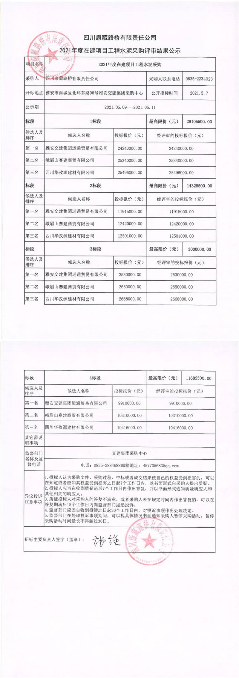 四川康藏路橋有限責(zé)任公司2021年度在建項(xiàng)目工程水泥采購(gòu)評(píng)審結(jié)果公示