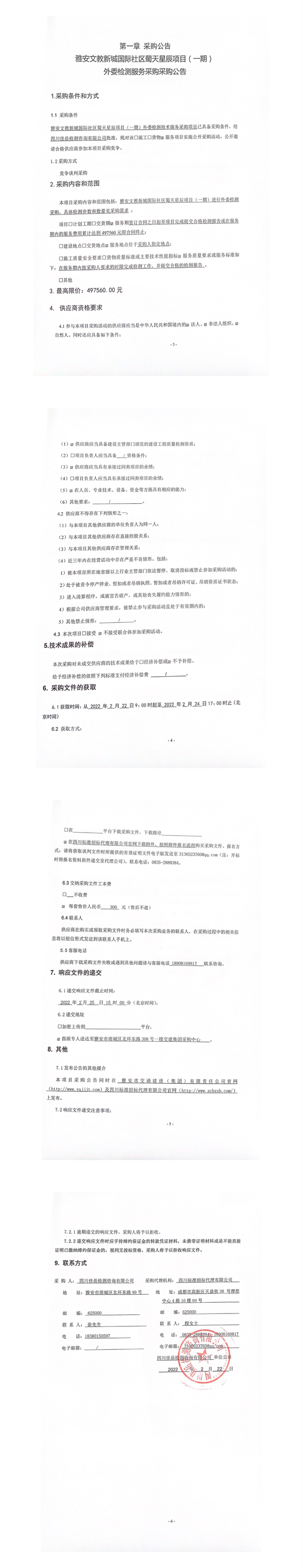 四川佳岳檢測(cè)咨詢有限公司雅安文教新城國(guó)際社區(qū)蜀天星辰項(xiàng)目(一期)外委檢測(cè)服務(wù)采購(gòu)采購(gòu)公告