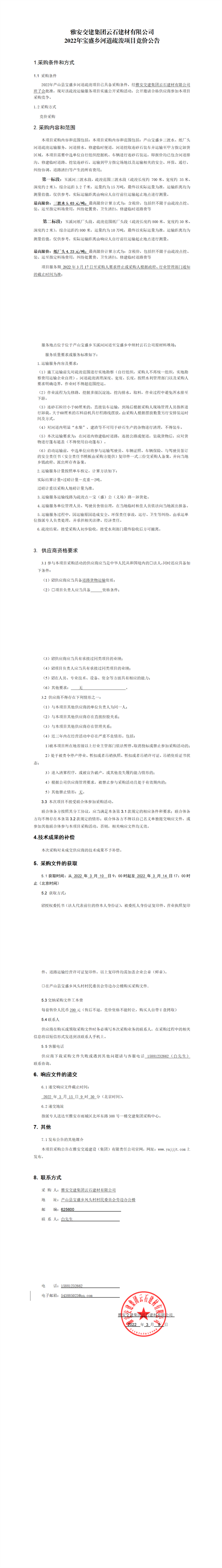雅安交建集團(tuán)云石建材有限公司2022年寶盛鄉(xiāng)河道疏浚項(xiàng)目競價(jià)公告
