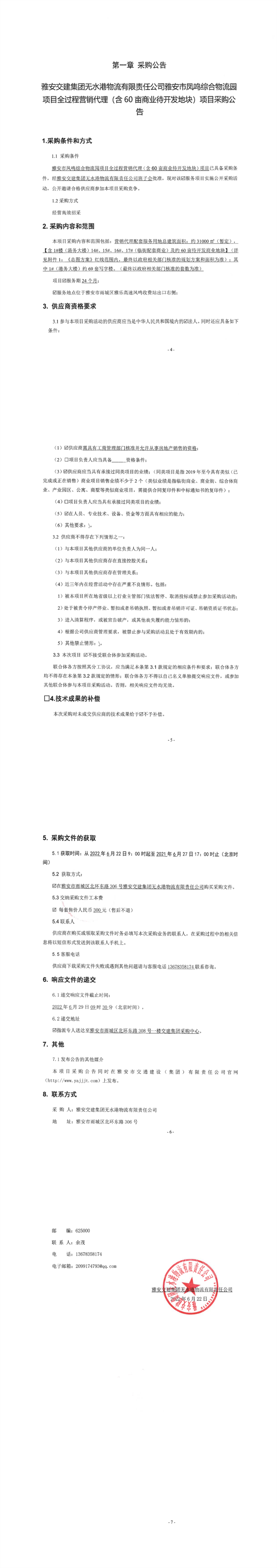 雅安交建集團(tuán)無(wú)水港物流有限責(zé)任公司雅安市鳳鳴綜合物流園項(xiàng)目全過(guò)程營(yíng)銷(xiāo)代理(含60畝商業(yè)待開(kāi)發(fā)地塊)項(xiàng)目采購(gòu)公告