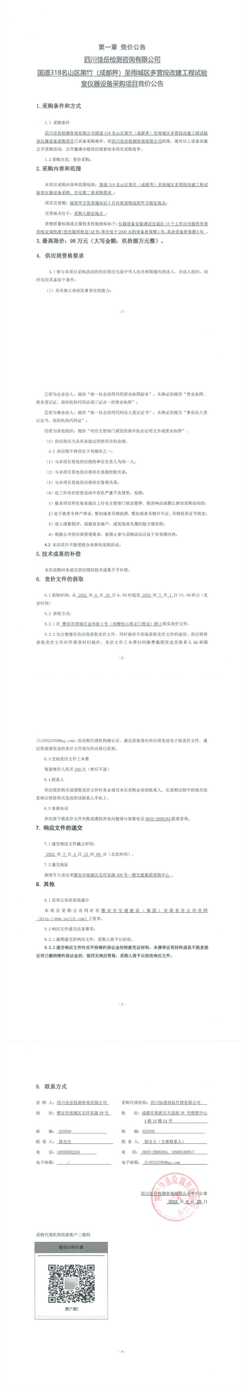 四川佳岳檢測咨詢有限公司國道318名山區(qū)黑竹(成都界)至雨城區(qū)多營段改建工程試驗(yàn)室儀器設(shè)備采購項(xiàng)目競價(jià)公告