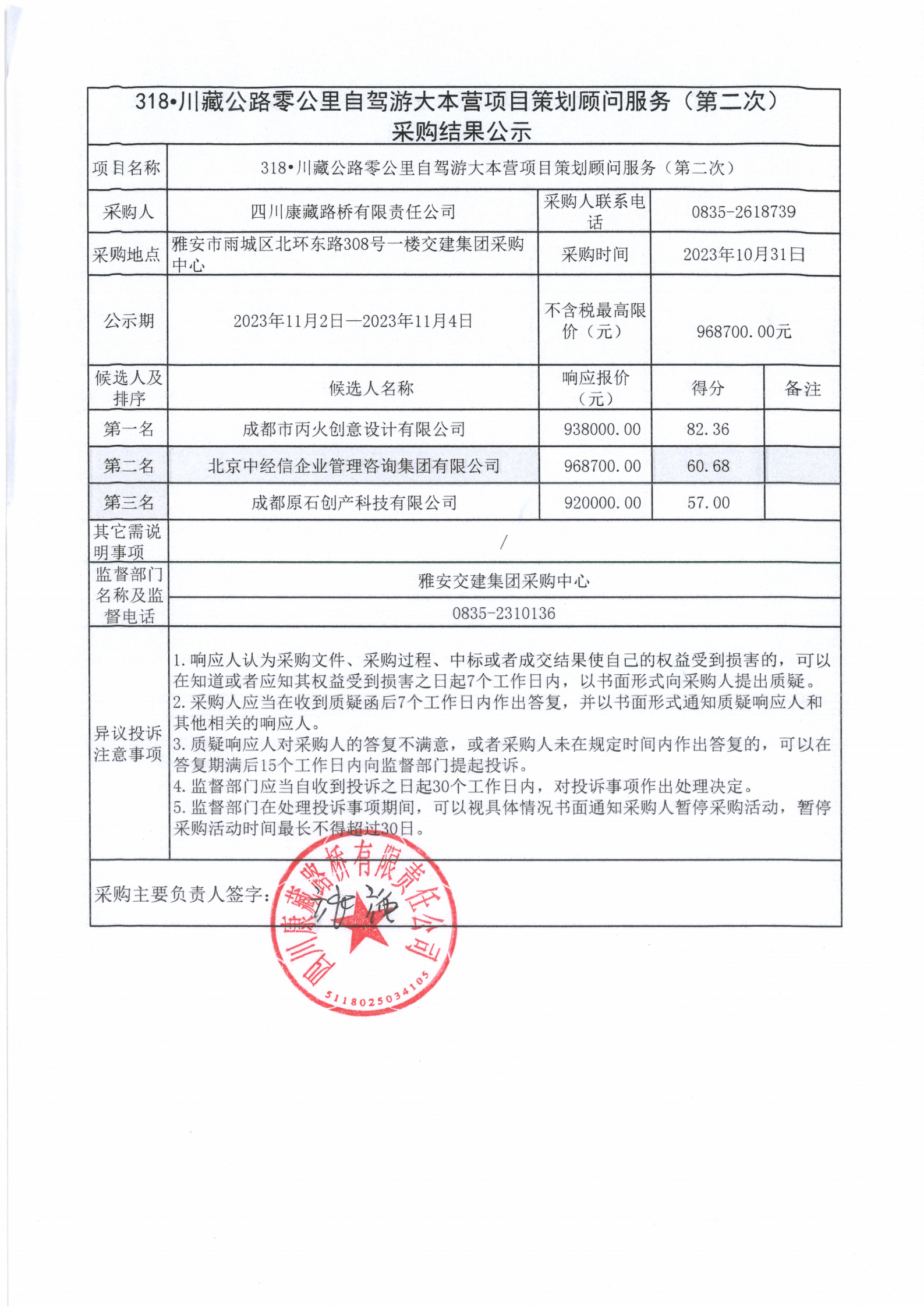 四川康藏路橋有限責任公司 318•川藏公路零公里自駕游大本營項目策劃顧問服務(第二次)采購結(jié)果公示