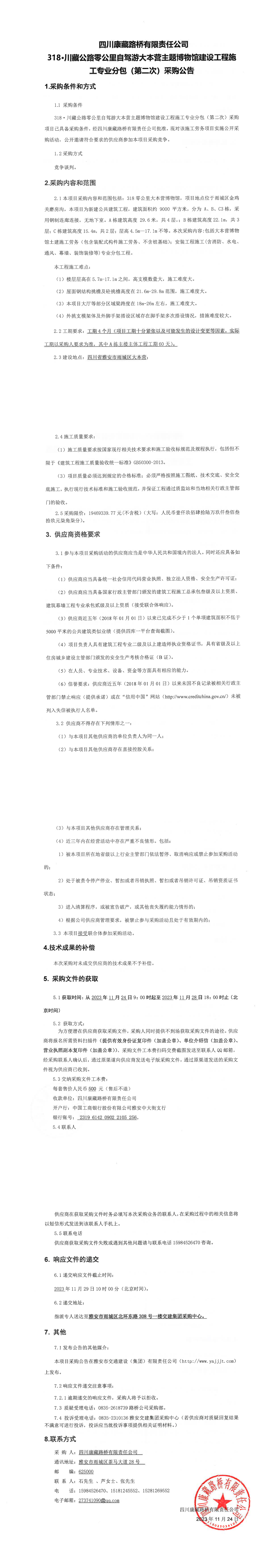 四川康藏路橋有限責(zé)任公司318·川藏公路零公里自駕游大本營(yíng)主題博物館建設(shè)工程施工專業(yè)分包(第二次)采購公告