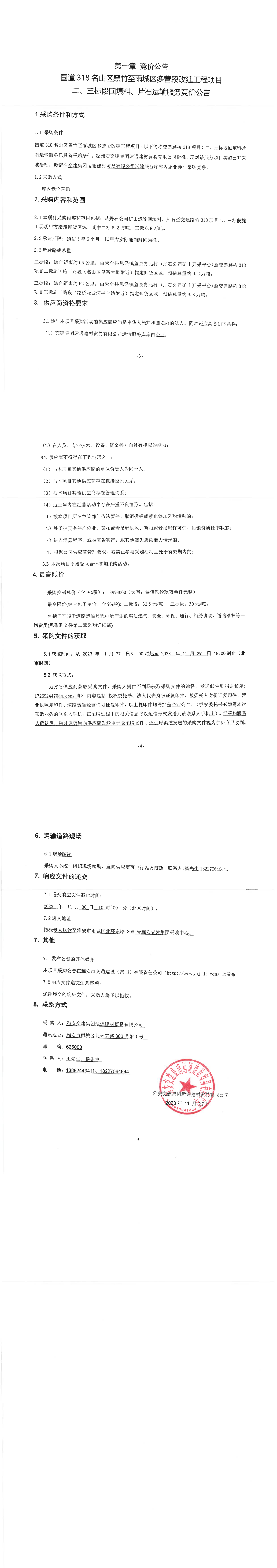 交建集團運通建材貿(mào)易有限公司國道318名山區(qū)黑竹至雨城區(qū)多營段改建工程項目二、三標段回填料、片石運輸服務競價公告