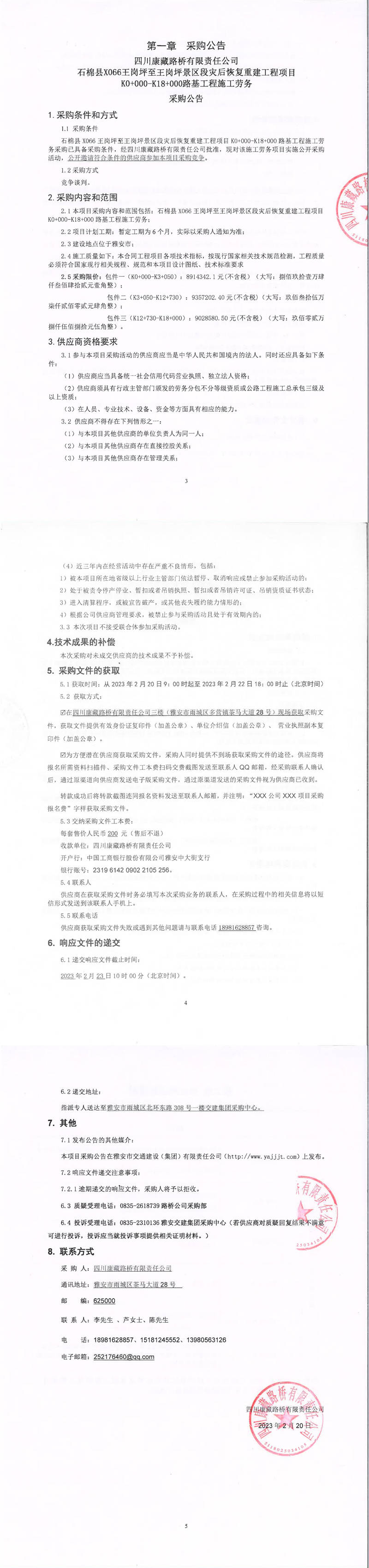 四川康藏路橋有限責(zé)任公司石棉縣X066王崗坪至王崗坪景區(qū)段災(zāi)后恢復(fù)重建工程項(xiàng)目K0+000-K18+000路基工程施工勞務(wù)采購(gòu)公告