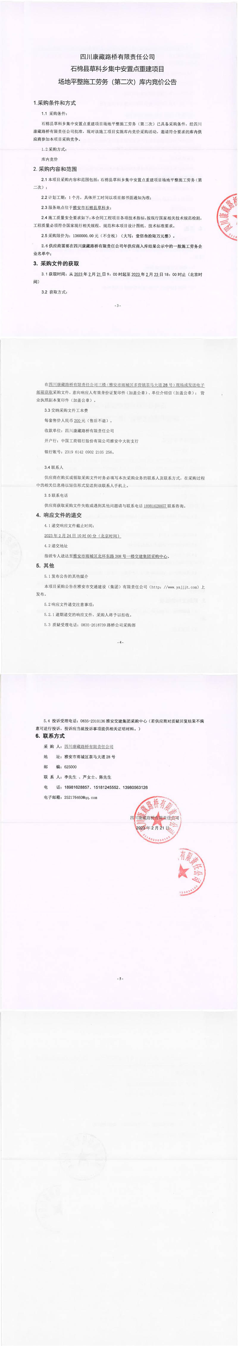 四川康藏路橋有限責任公司石棉草科鄉(xiāng)集中安置點重建項目場地平整施工勞務庫內(nèi)施工勞務庫內(nèi)采購流標通知