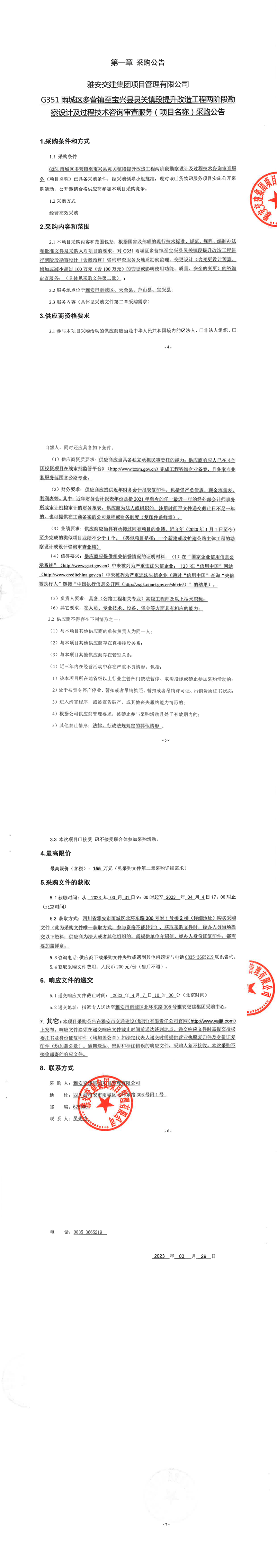 雅安交建集團(tuán)項(xiàng)目管理有限公司G351雨城區(qū)多營鎮(zhèn)至寶興縣靈關(guān)鎮(zhèn)段提升改造工程兩階段勘察設(shè)計(jì)及過程技術(shù)咨詢審查服務(wù)(項(xiàng)目名稱)采購公告