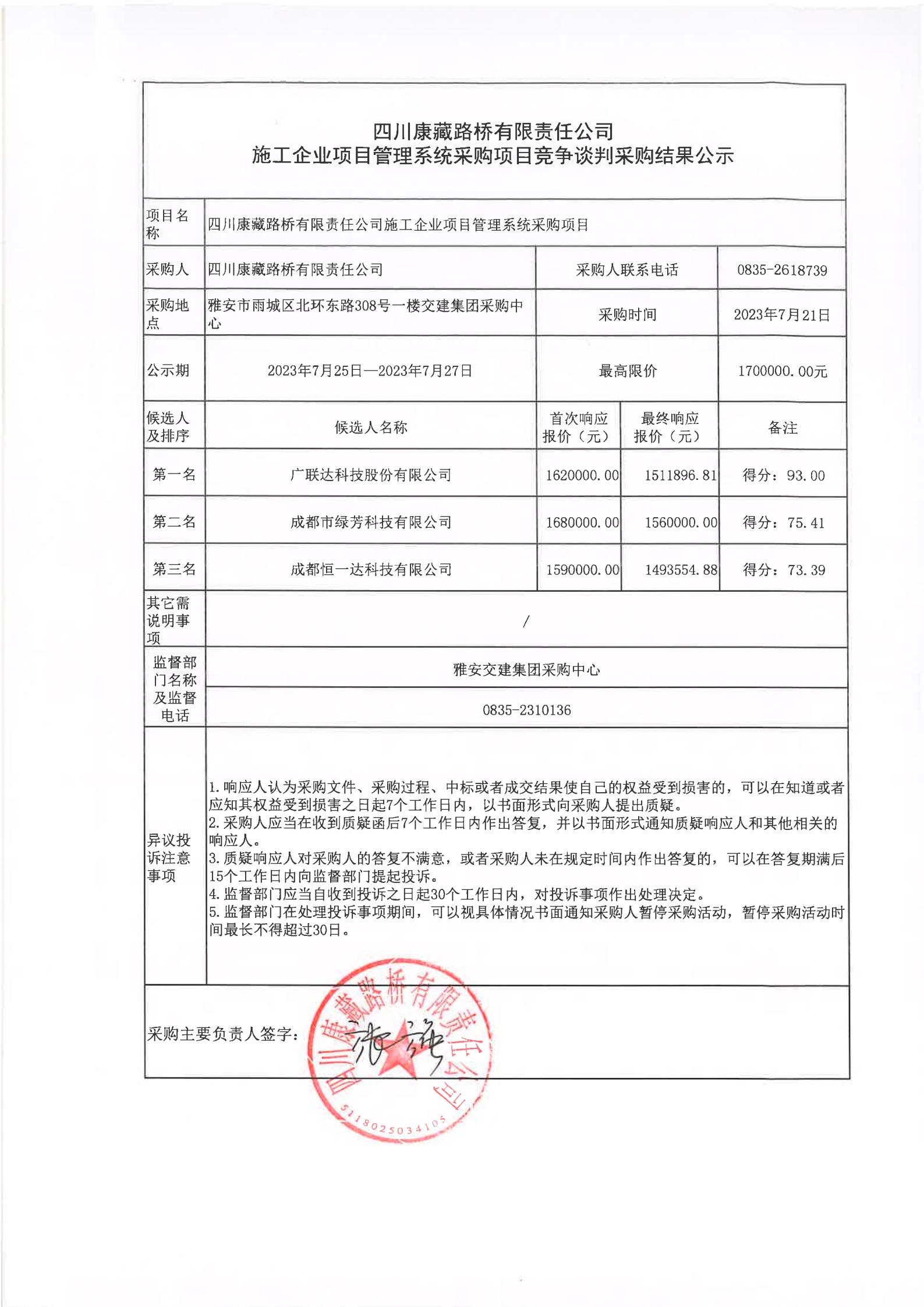 四川康藏路橋有限責任公司施工企業(yè)項目管理系統(tǒng)采購項目競爭談判采購結(jié)果公示