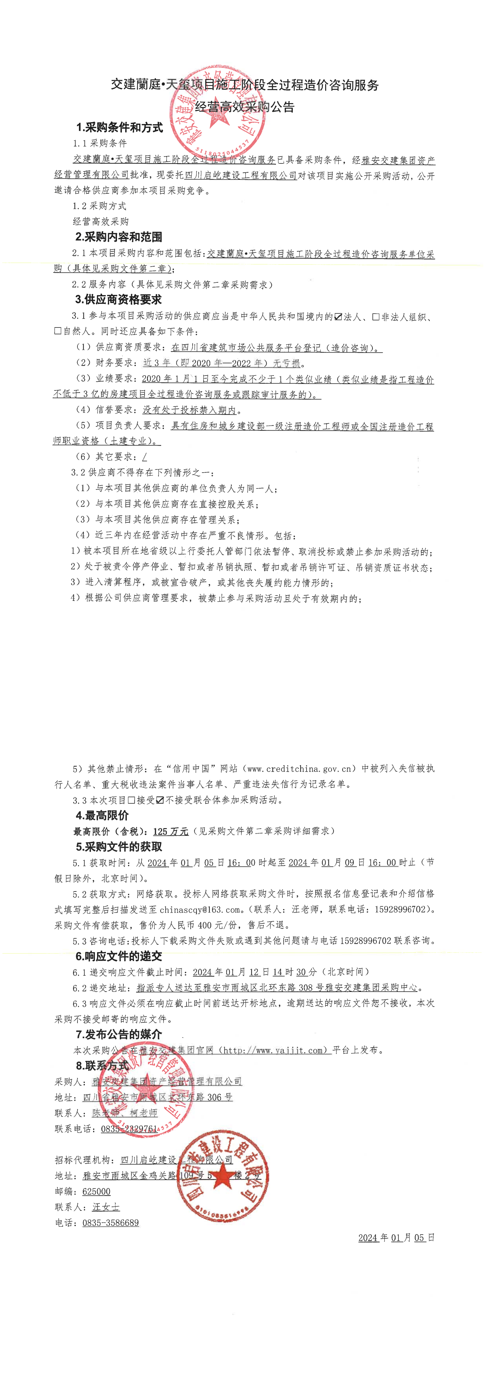 交建蘭庭·天璽項(xiàng)目施工階段全過(guò)程造價(jià)咨詢(xún)服務(wù)經(jīng)營(yíng)高效采購(gòu)公告