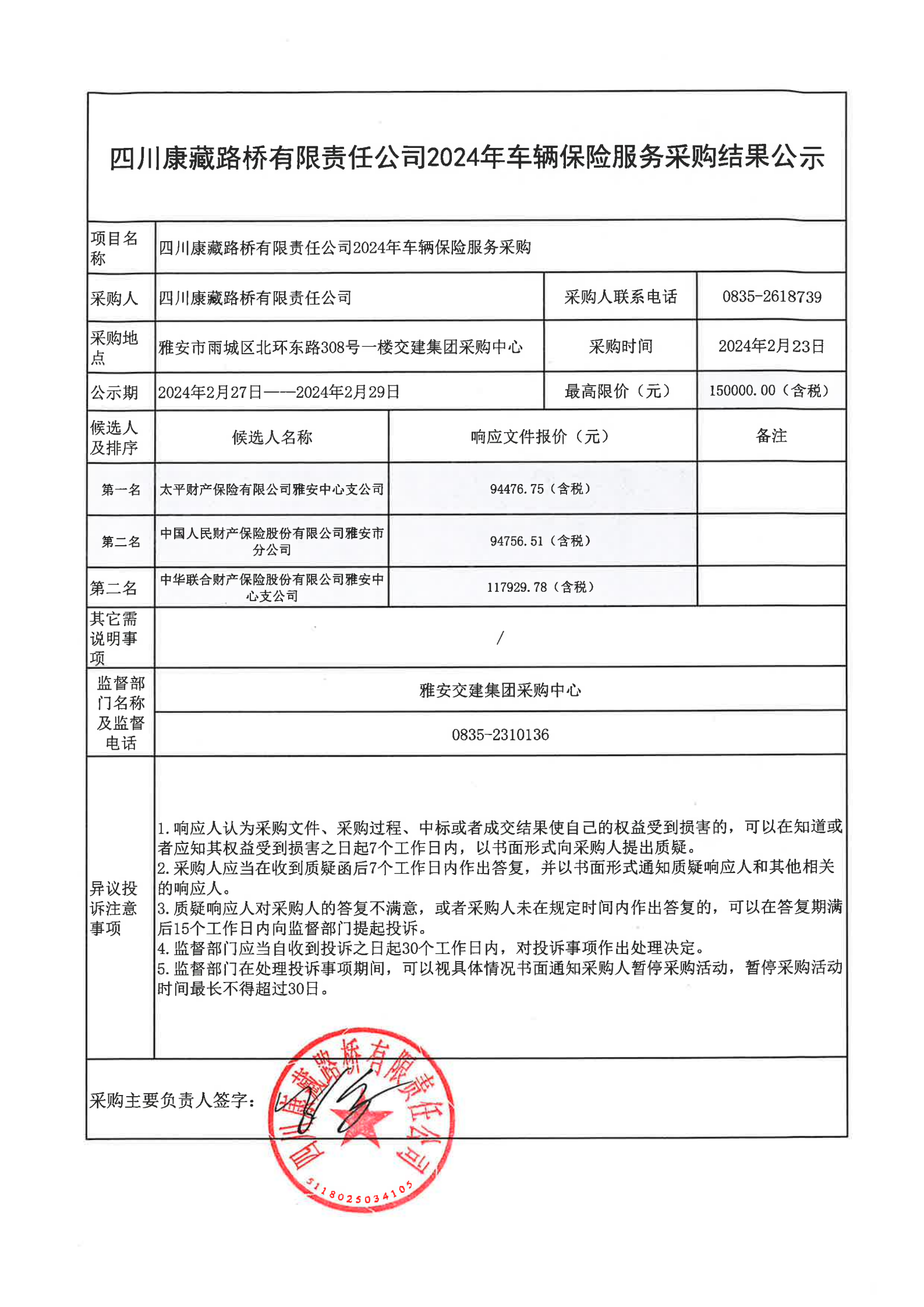 四川康藏路橋有限責(zé)任公司2024年車輛保險服務(wù)采購結(jié)果公示