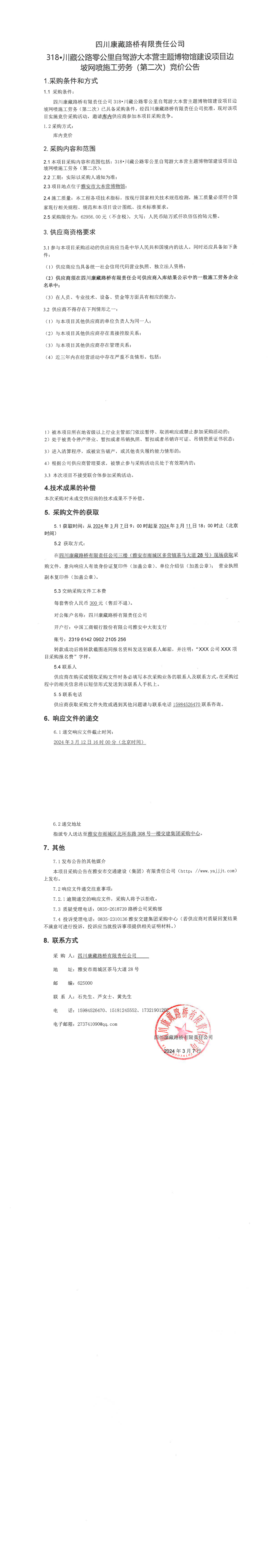 四川康藏路橋有限責(zé)任公司318·川藏公路零公里自駕游大本營主題博物館建設(shè)項目邊坡網(wǎng)噴施工勞務(wù)(第二次)競價公告