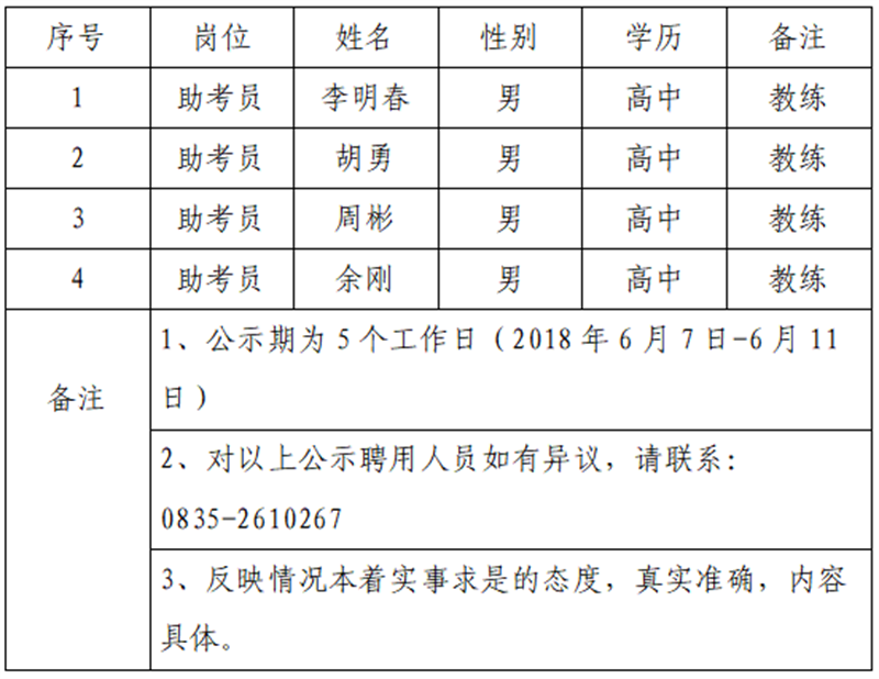 4名擬聘用人員,現(xiàn)公示名單如下: