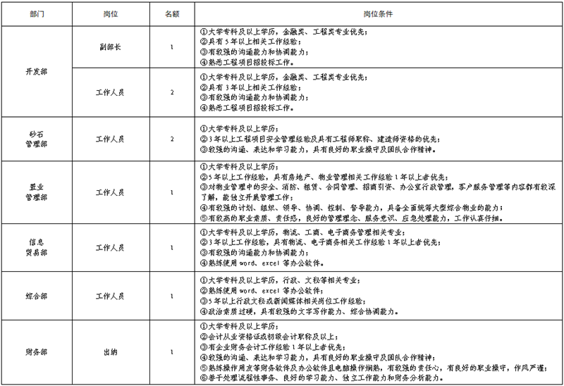 雅安交建集團(tuán)運(yùn)通貿(mào)易有限公司是雅安市重點(diǎn)國有企業(yè)雅安市交建集團(tuán)下屬子公司。根據(jù)公司發(fā)展需要,決定面向社會(huì)公開招聘9名工作人員,現(xiàn)將有關(guān)事項(xiàng)公告如下:
