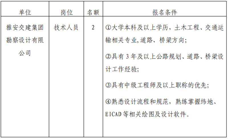 雅安交建集團(tuán)關(guān)于公開招聘所屬子公司工作人員的公告(勘察設(shè)計公司)