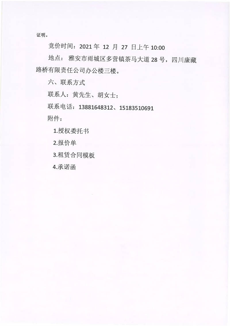 四川康藏路橋有限責任公司關(guān)于雅安市雨城區(qū)多營鎮(zhèn)茶馬大道28號三樓9間辦公用房招租的公告