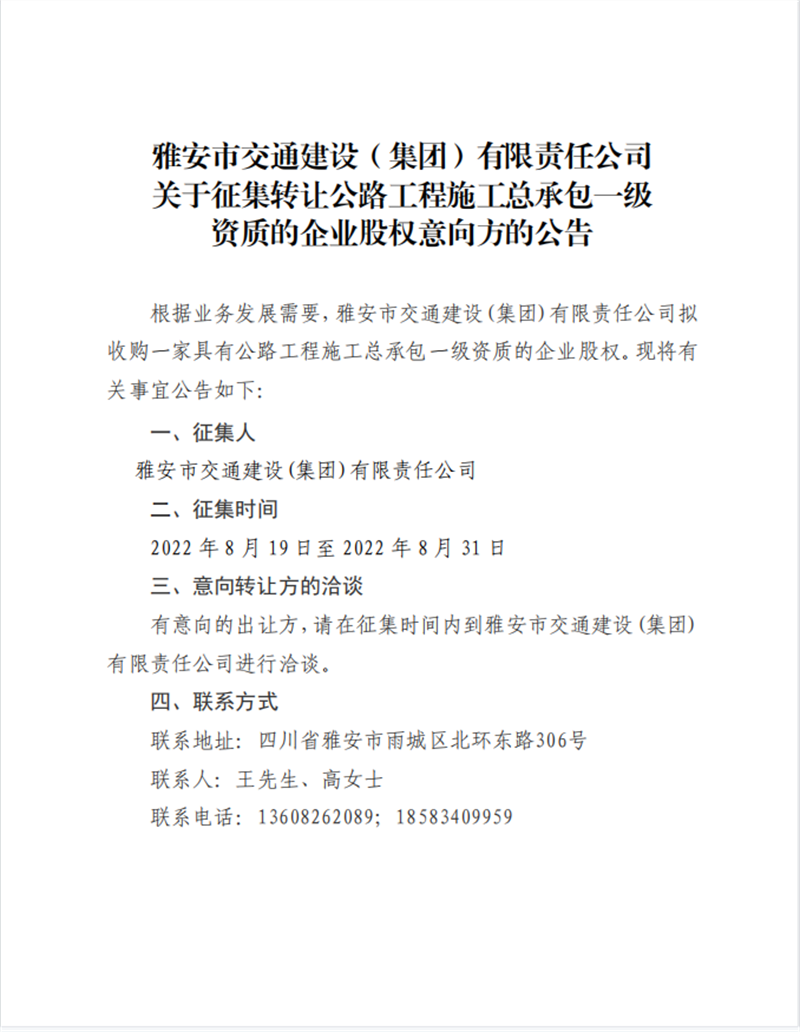 êP(gu¨¡n)ÓÚÕ÷¼¯ÞD(zhu¨£n)׌¹«Â·¹¤³ÌÊ©¹¤¿‚³Ð°üÒ»¼‰(j¨ª)ÙYÙ|(zh¨¬)µÄÆó˜I(y¨¨)¹É™à(qu¨¢n)ÒâÏòºÏ×÷·½µÄ¹«¸æ