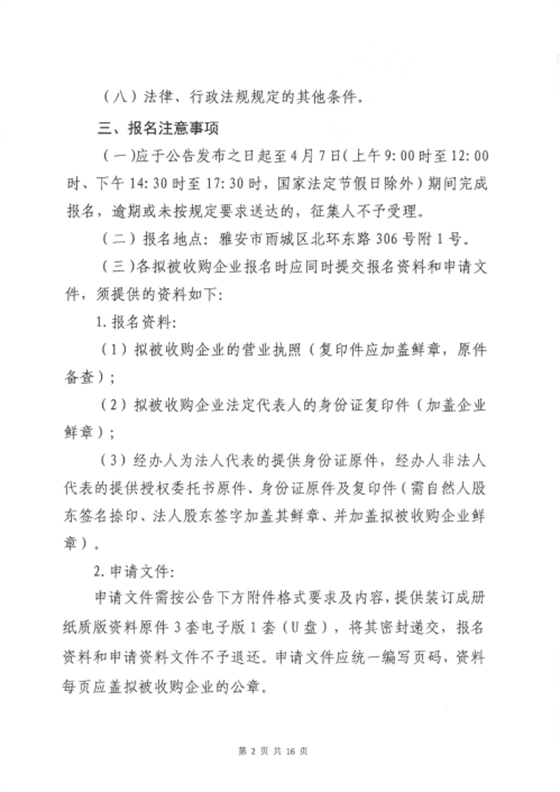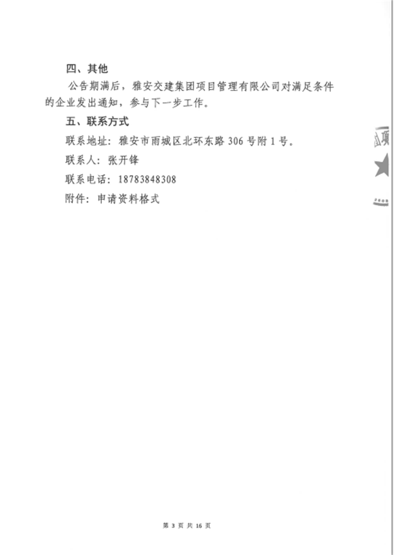 雅安交建集團項目管理有限公司股權收購事項(第三次)征集公告