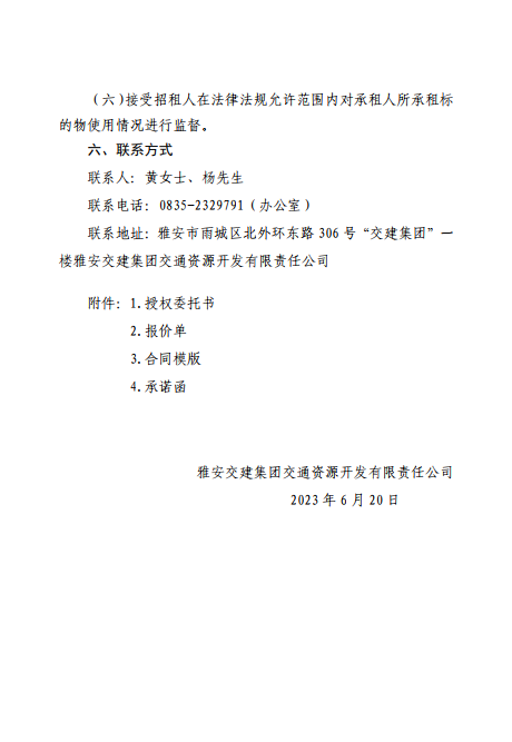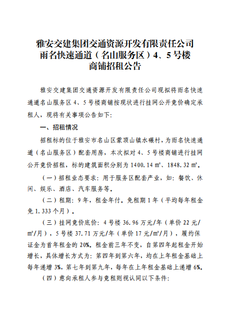 雅安交建集團交通資源開發(fā)有限責任公司雨名快速通道(名山服務區(qū))4、5號樓招租公告附件