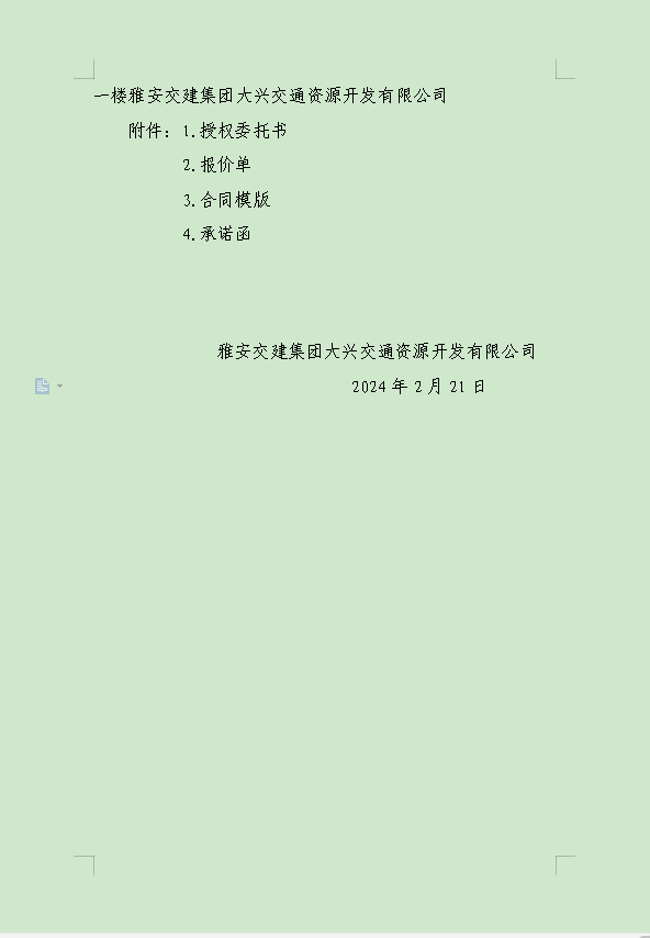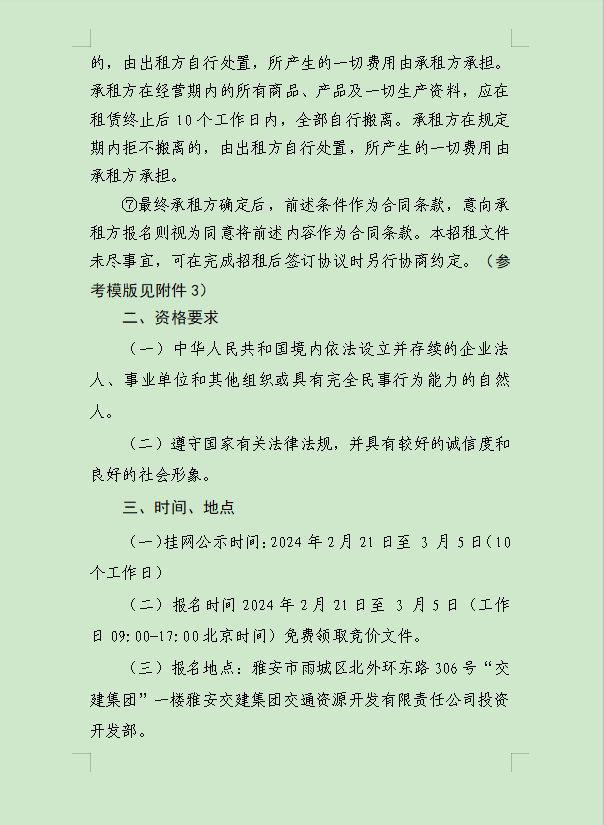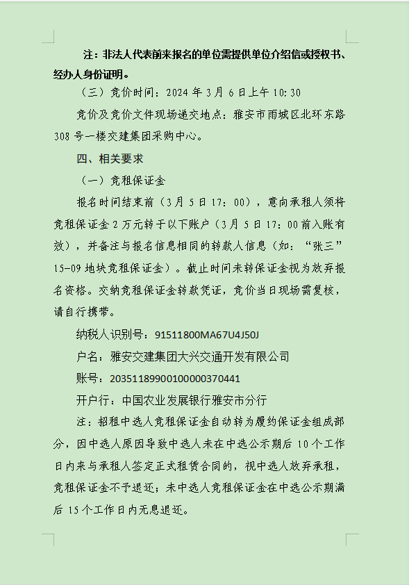 雅安交建集團(tuán)大興交通資源開發(fā)有限公司關(guān)于雨城區(qū)姚橋片區(qū)15-09地塊2024年競價(jià)招租的公告