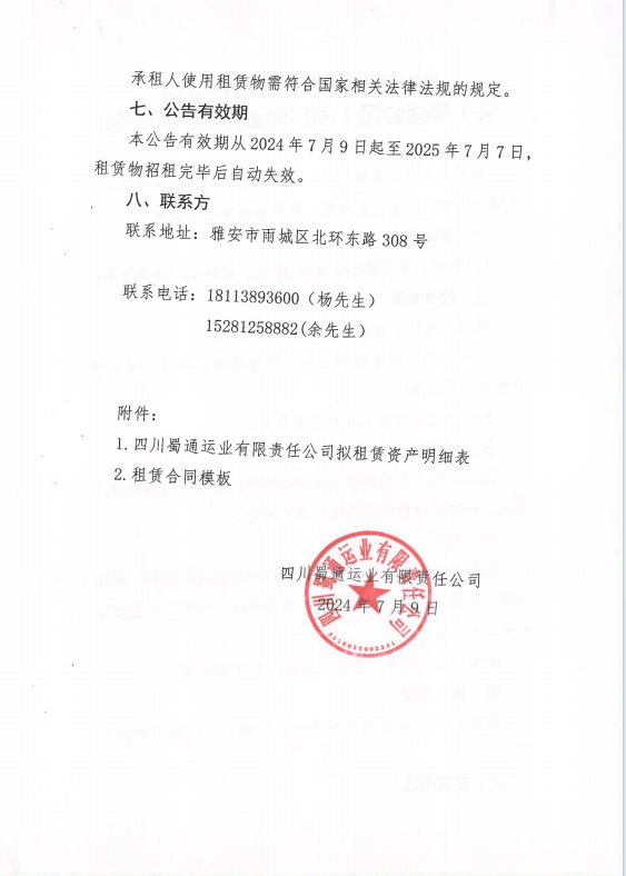 四川蜀通運業(yè)有限責任公司關(guān)于蜀通公司1間門面進行掛網(wǎng)的公告