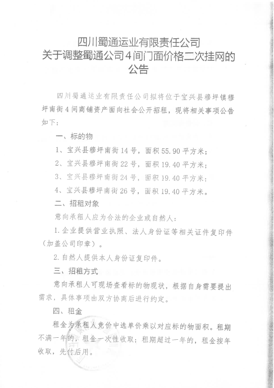 ËÄ´¨Êñͨß\(y¨´n)˜I(y¨¨)ÓÐÏÞØŸ(z¨¦)Èι«Ë¾êP(gu¨¡n)ÓÚÕ{(di¨¤o)ÕûÊñͨ¹«Ë¾4égéTÃæƒr(ji¨¤)¸ñ¶þ´Î’ì¾W(w¨£ng)µÄ¹«¸æ