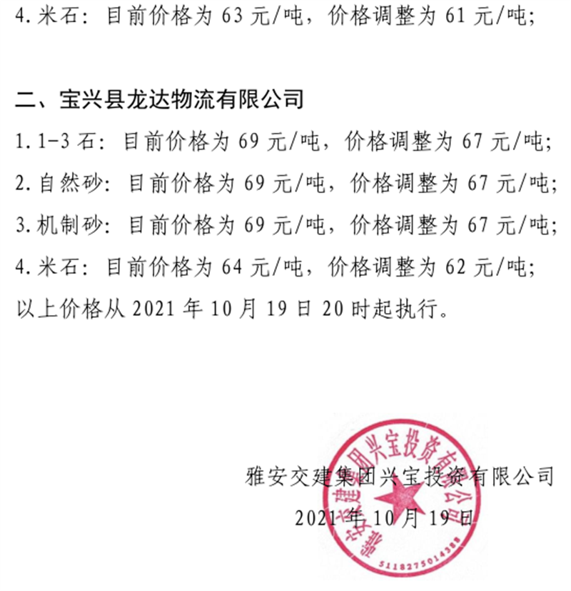 ÑŰ²½»½¨¼¯ˆF(tu¨¢n)ÅdŒš¹«Ë¾êP(gu¨¡n)ÓÚÕ{(di¨¤o)Õû³ÉÆ·ÁÏäNÊÛƒr(ji¨¤)¸ñµÄ֪ͨ£¨2021.10.20£©