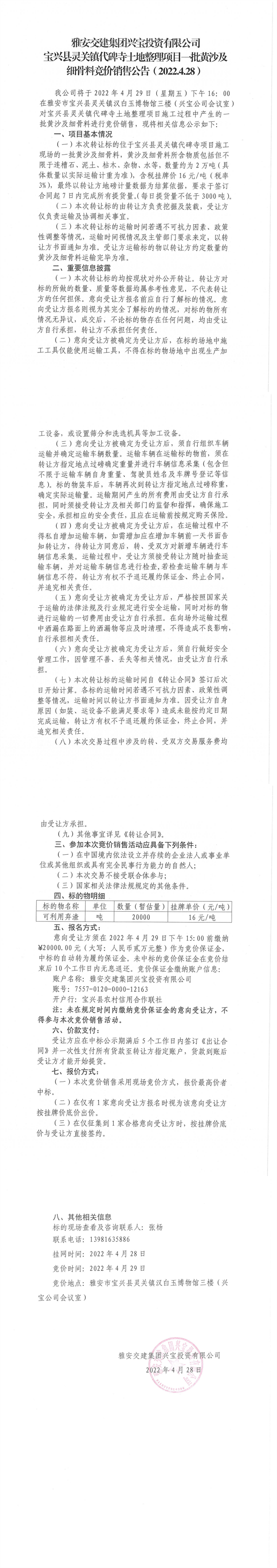 ÑŰ²½»½¨¼¯ˆF(tu¨¢n)ÅdŒšÍ¶ÙYÓÐÏÞ¹«Ë¾ŒšÅd¿hì`êP(gu¨¡n)æ‚(zh¨¨n)´ú±®ËÂÍÁµØÕûÀíí—ĿһÅúüSɳ¼°¼š(x¨¬)¹ÇÁϸ‚ƒräNÊÛ¹«¸æ£¨2022.4.28£©