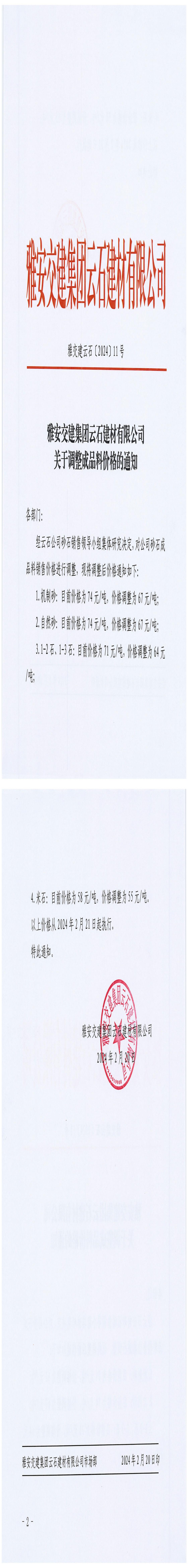 ÑŰ²½»½¨¼¯ˆFÔÆÊ¯½¨²ÄÓÐÏÞ¹«Ë¾³ÉÆ·Áσr¸ñÕ{(di¨¤o)Õû¹«¸æ£¨2024-2-21£©